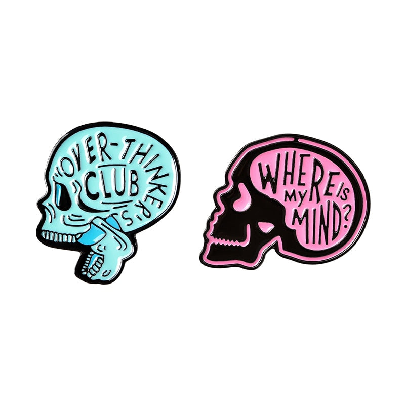 Overthinkers club brooch pins anxiety obsessive-compulsive disorder badge pin mental health jewelry halloween gothic accessories